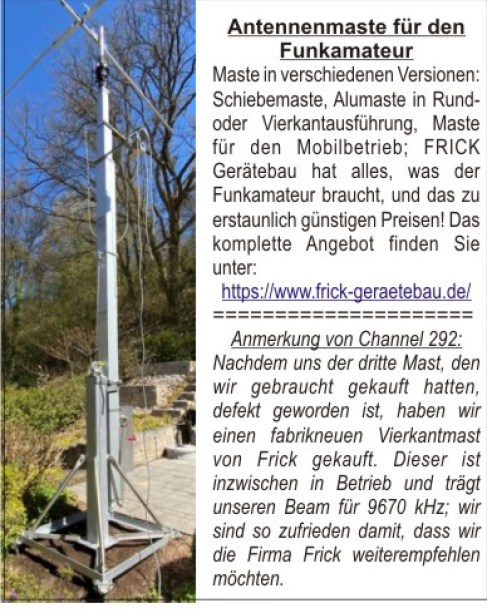 Und, da Du ja immer wieder mal Besuch von der Bundesnetzagentur bekommst; richte dem Peiltrupp schöne Grüße aus, und meinen Dank für die gute Arbeit!