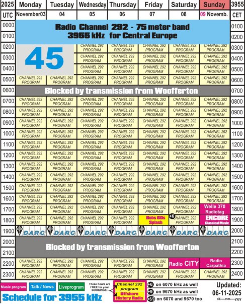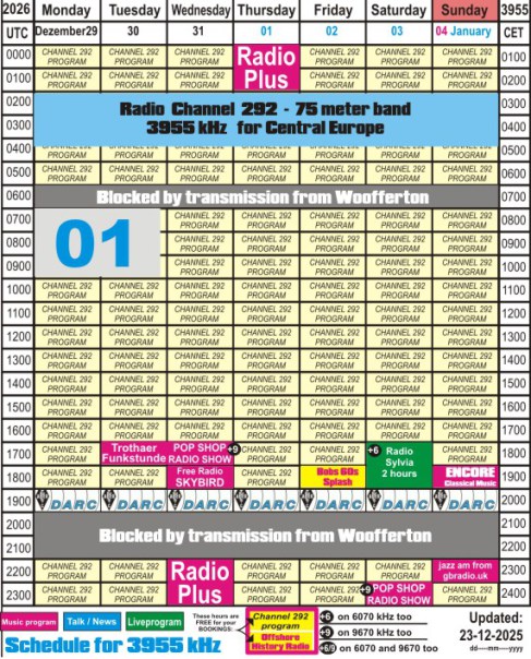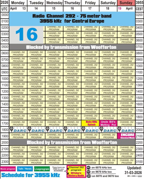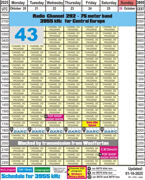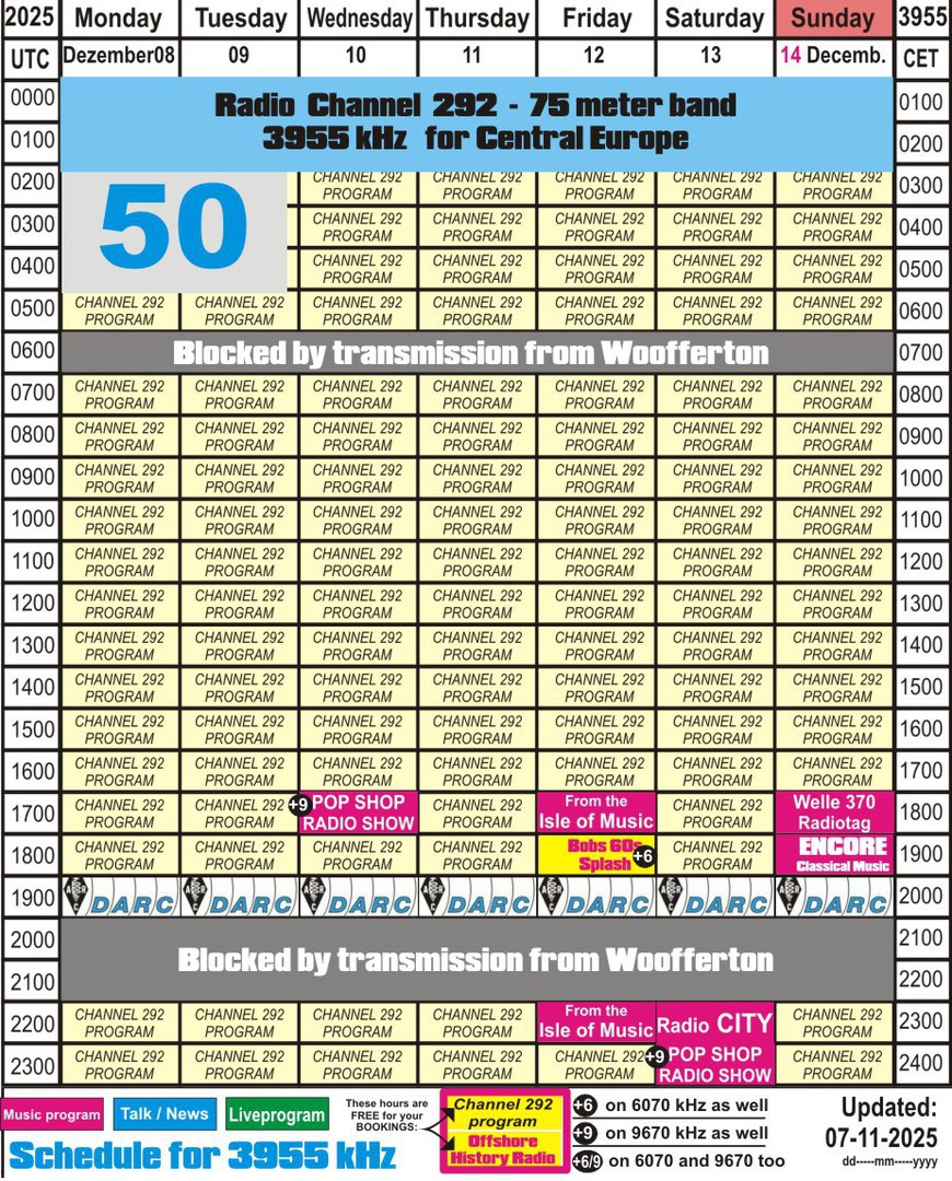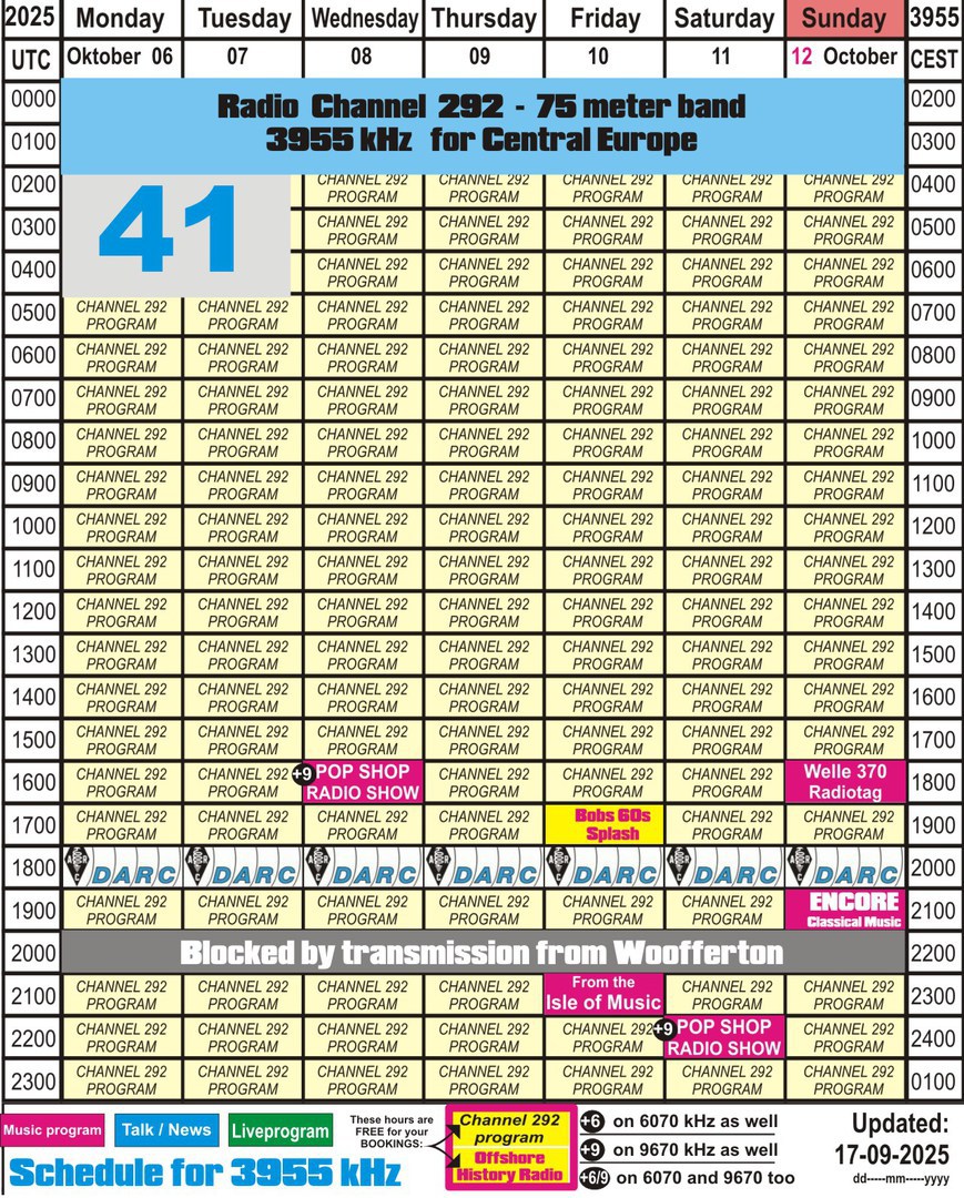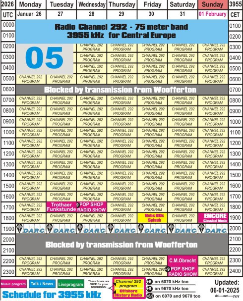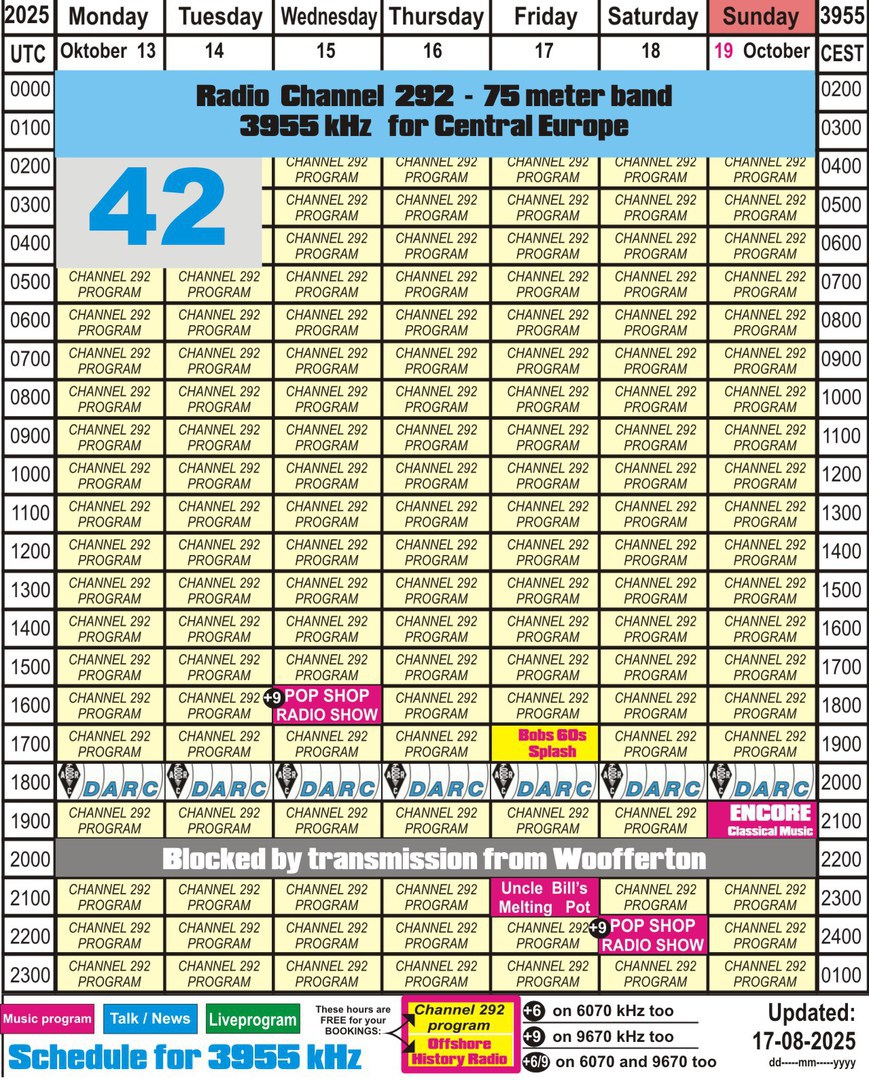 The stations mentioned below you can hear over the transmitter of Radio Channel 292: