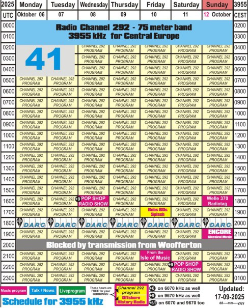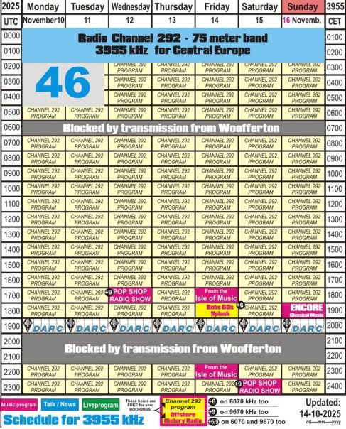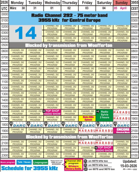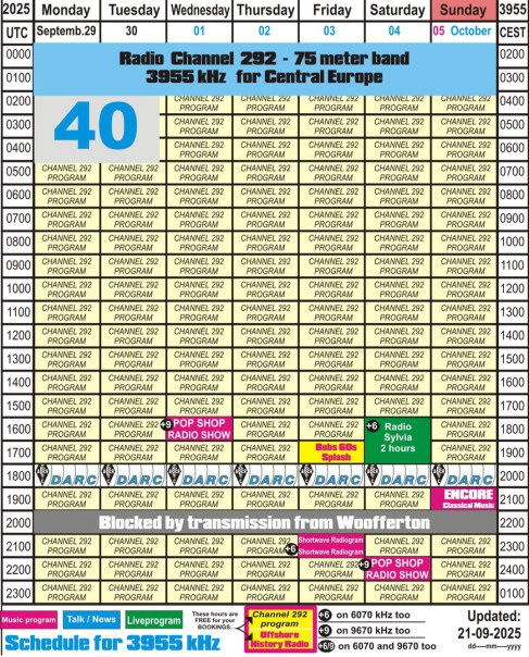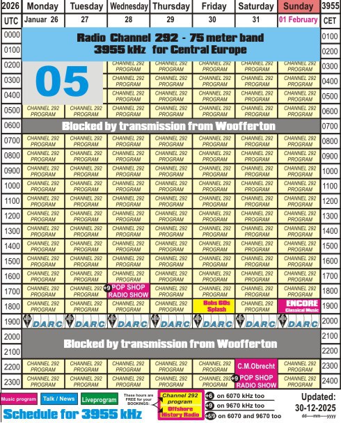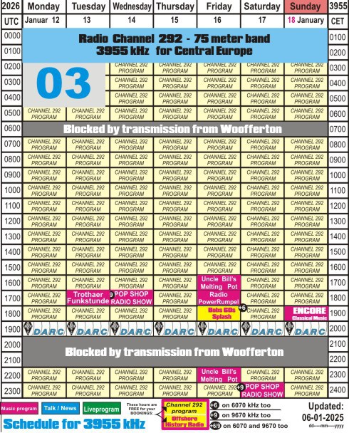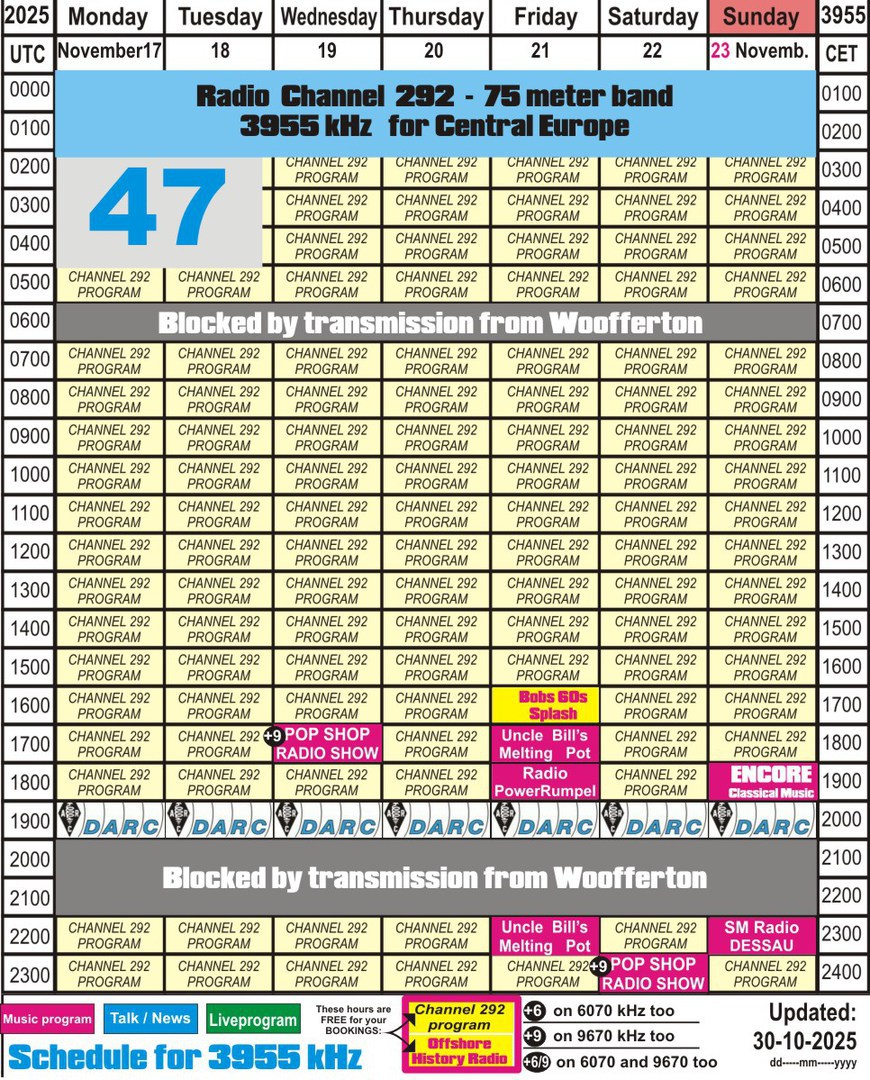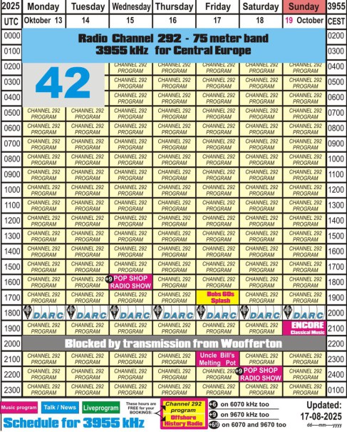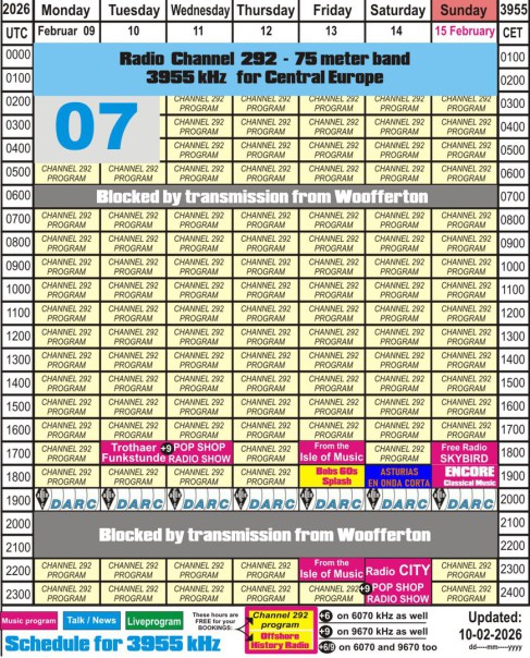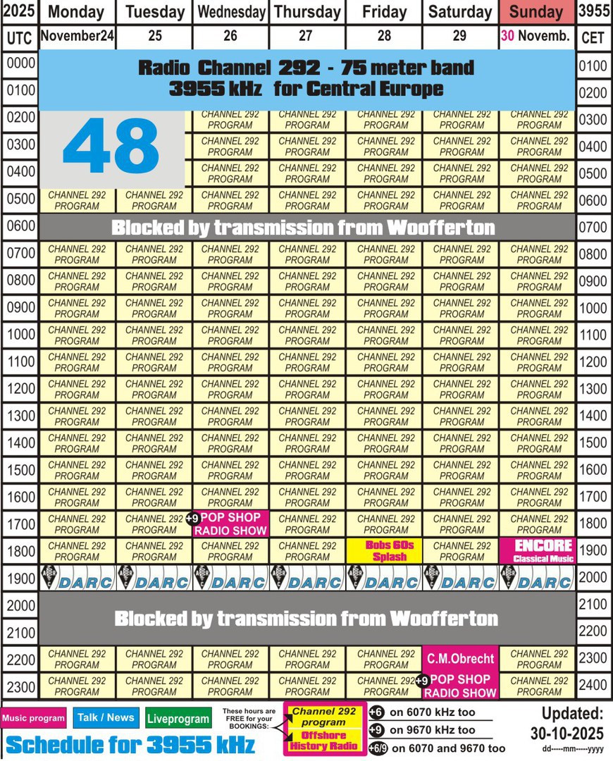 The stations mentioned below you can hear over the transmitter of Radio Channel 292: