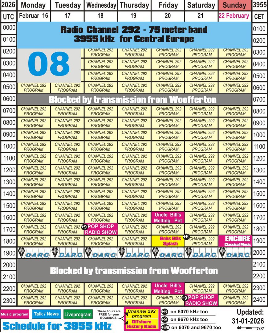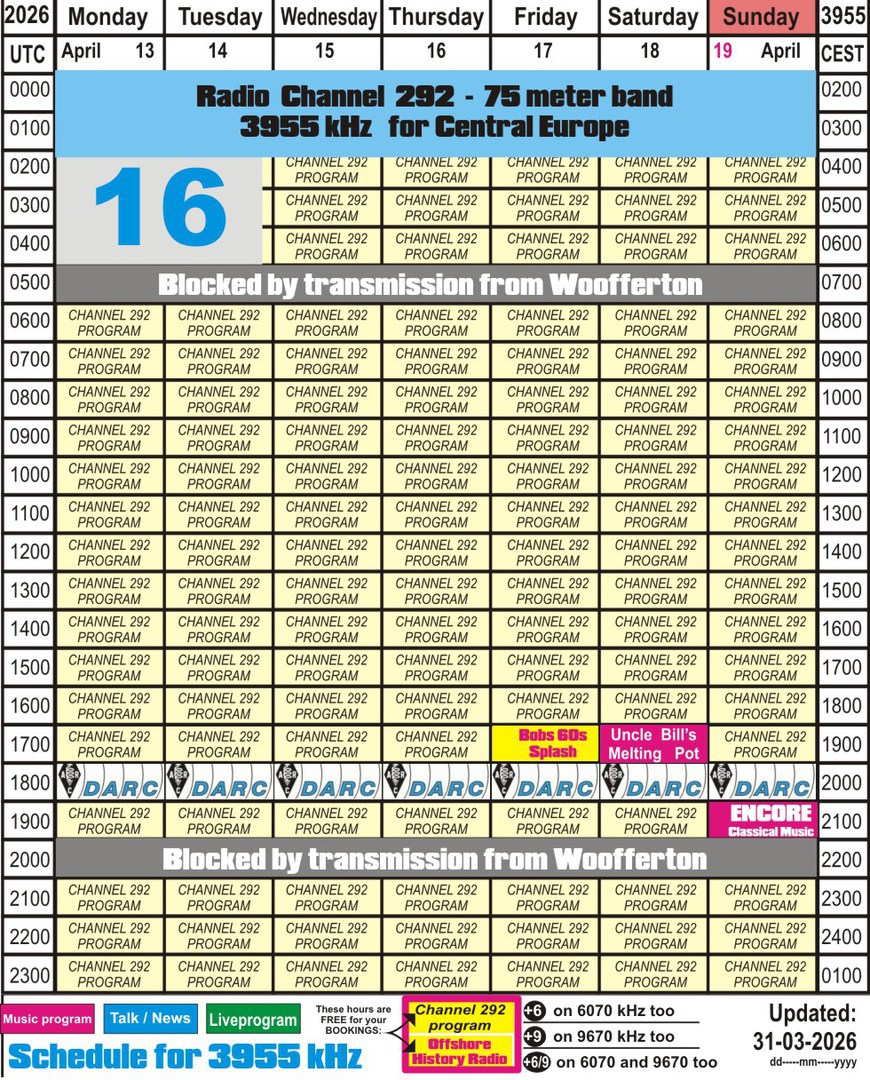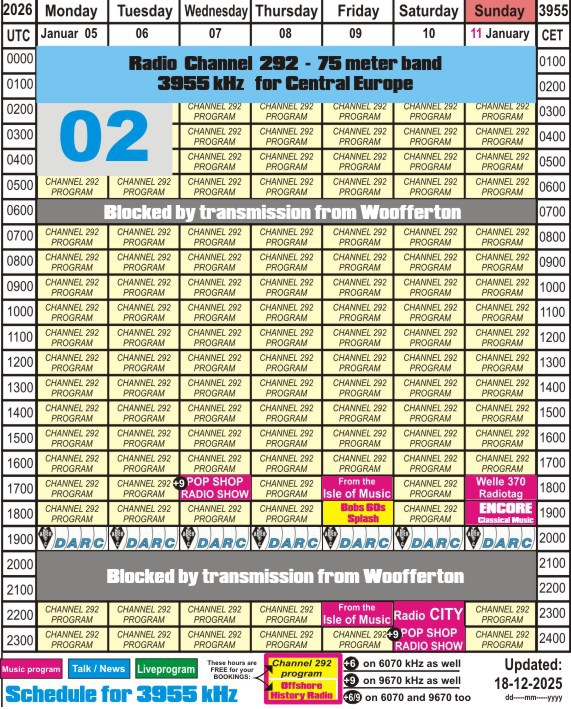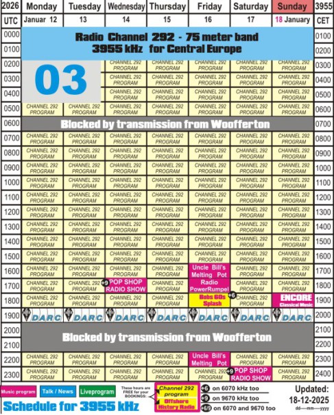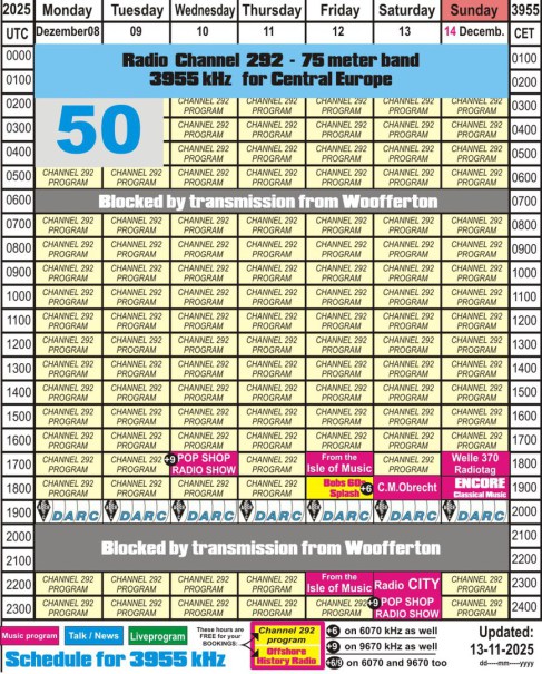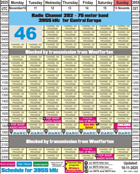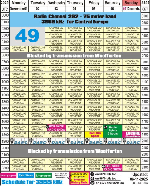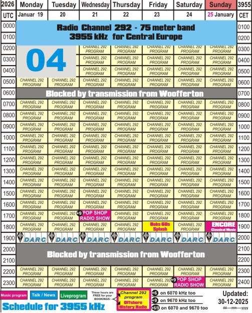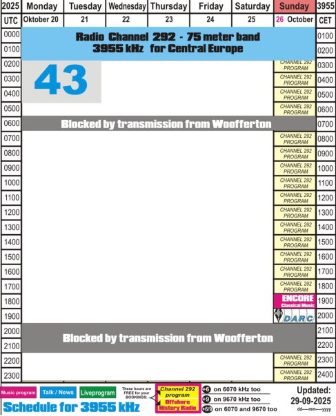 The stations mentioned below you can hear over the transmitter of Radio Channel 292: