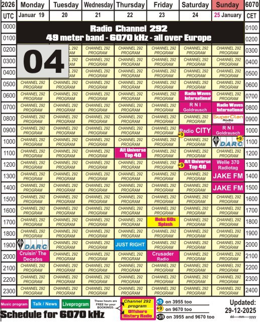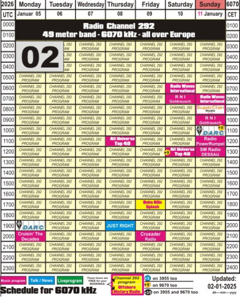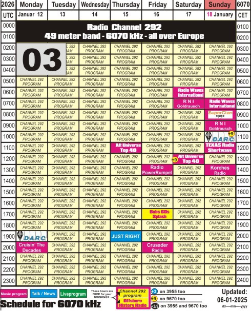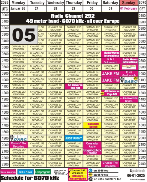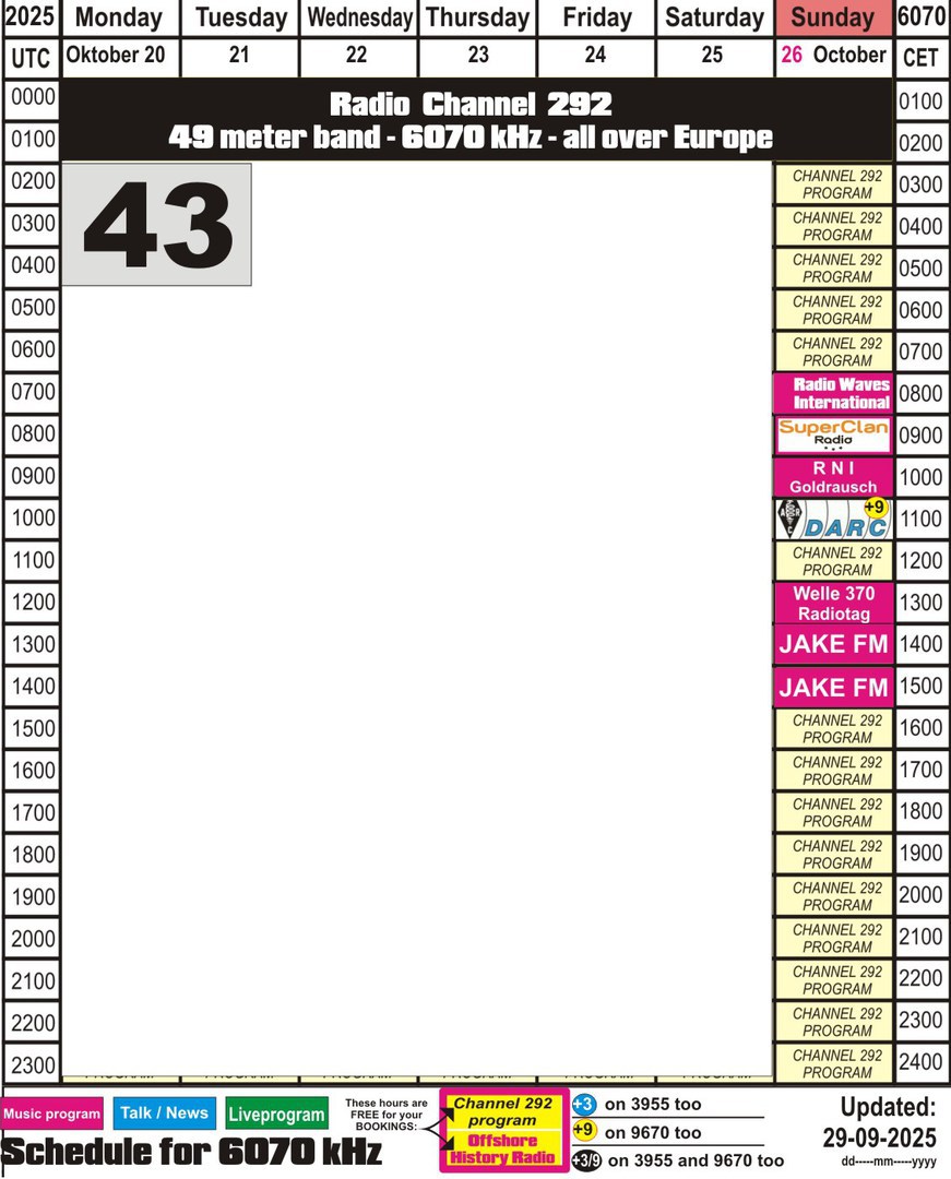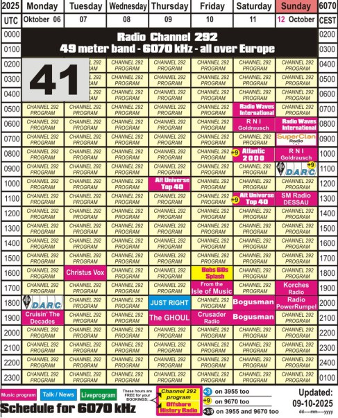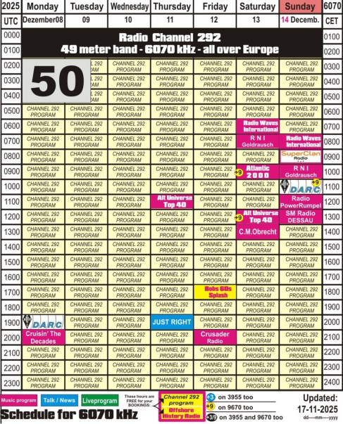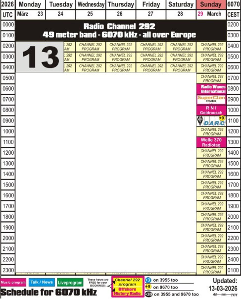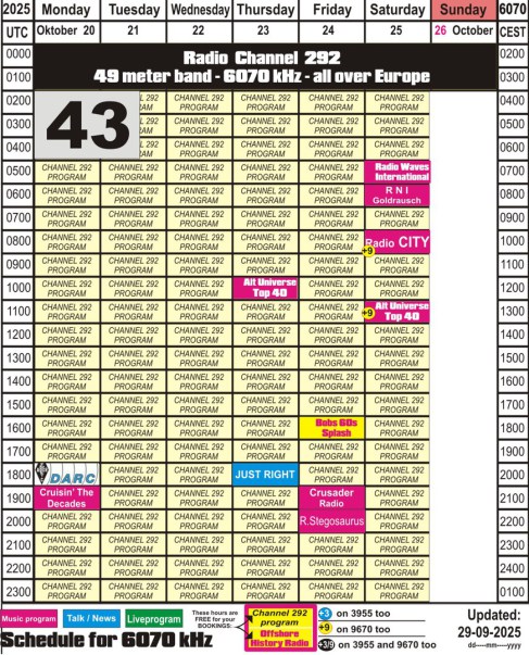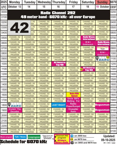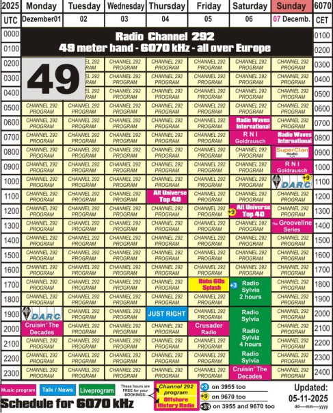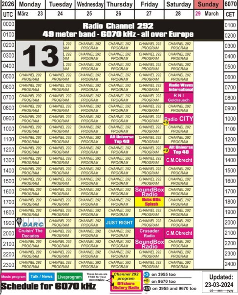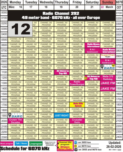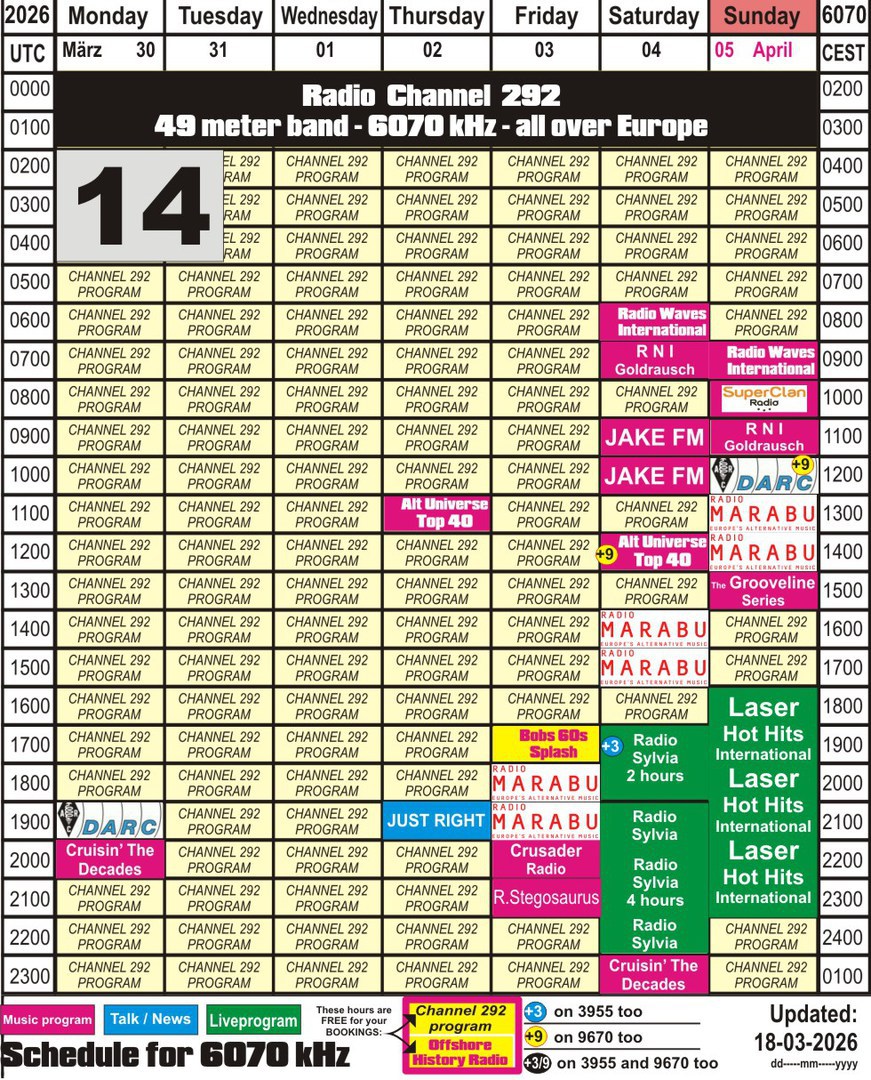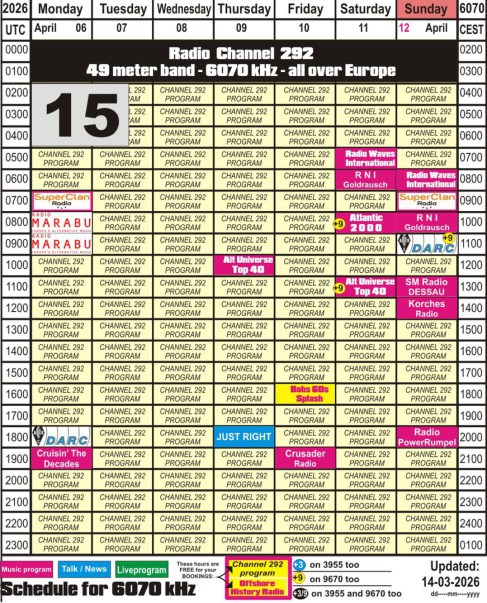 Zeiten, die angegeben sind mit "Channel 292 program"